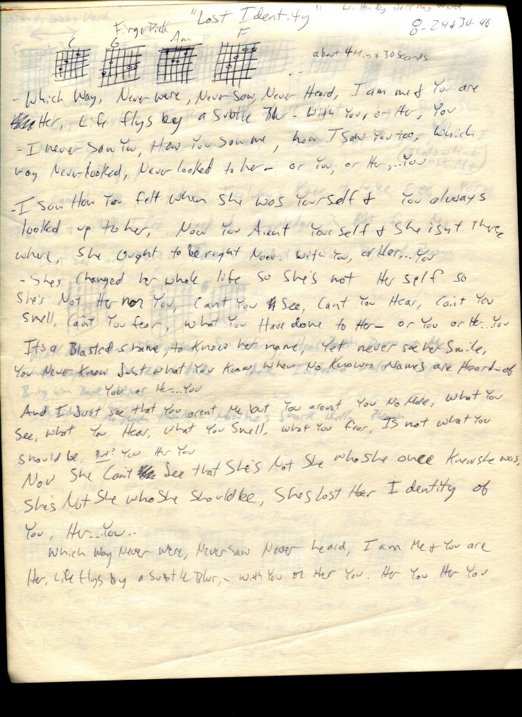 I just really like the tempo of this one (V2) better, though I always liked the sound of the original performance on my (Skinny) acoustic guitar. The whole song was based on that sound and I could never get a better sounding recording after the first take.